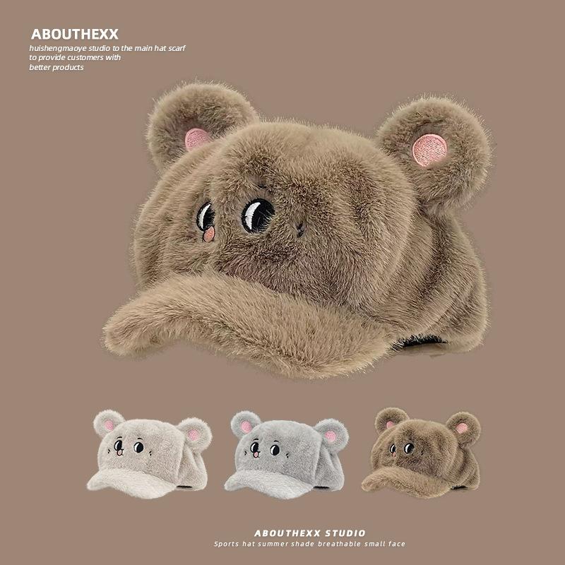 Cute Gray Mouse Big Mouse Plush Duck Cap Autumn and Winter Warm Cartoon Baseball Cap Thick Furry Octagonal Hat