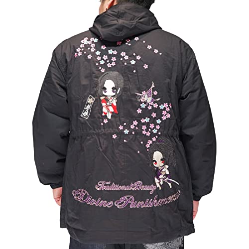 Battou Musume Karakuri Tamashii Japon Desenli Mod Ceket Erkek, Honoka ve Rin Chibi Karakterleri, Anime Tarzı, 214037-20 Siyah-L