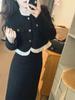 Small black dress, high-end exquisite long sweater with black knitted dress inside, women's autumn and winter