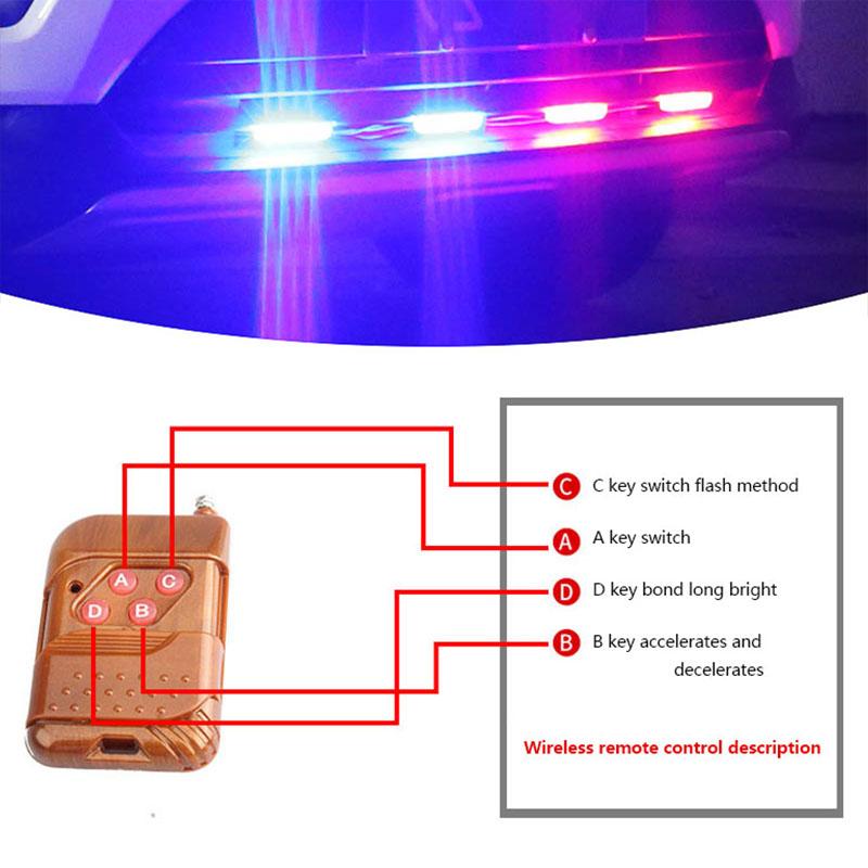 Car Front Grille Strobe Police Lights 4 In 1 Red Blue Flash Warning Emergency Lamp With Wireless Remote Control for Truck Van