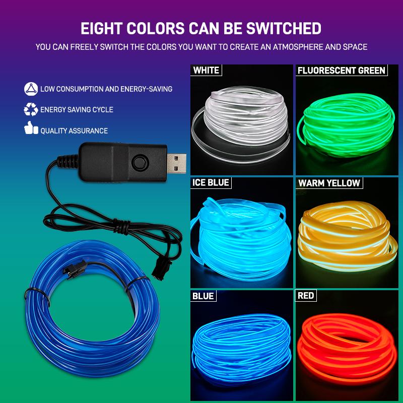 Car Interior Decorative Lamps EL Wiring Neon Strips Dashboard Auto LED Ambient Lights DIY Flexible Atmosphere Lamp 1M/3M/5M