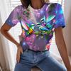 Vibrant Watercolor Style Hummingbirds Print T-Shirt Relaxed Fit Casual Short Sleeve Crew Neck Tee for Women Womens Clothing
