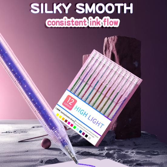 Üstün Konfor için Ergonomik Tasarım: Her simli jel kalem, rahat bir yazma deneyimi için ergonomik bir tutuş tasarımına sahiptir.. İster evde, okulda veya ofiste olsun, bu kalemler not alma, günlük tutma, scrapbooking ve daha fazlası için çok yönlüdür.