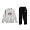 Li Ning Trendy Letter Print Round Neck Pullover Drop Shoulder Loose Long Sleeve Hoodie And Mid Waist Long Pants Set Men sets AWDU515-6+-AKLU519-1