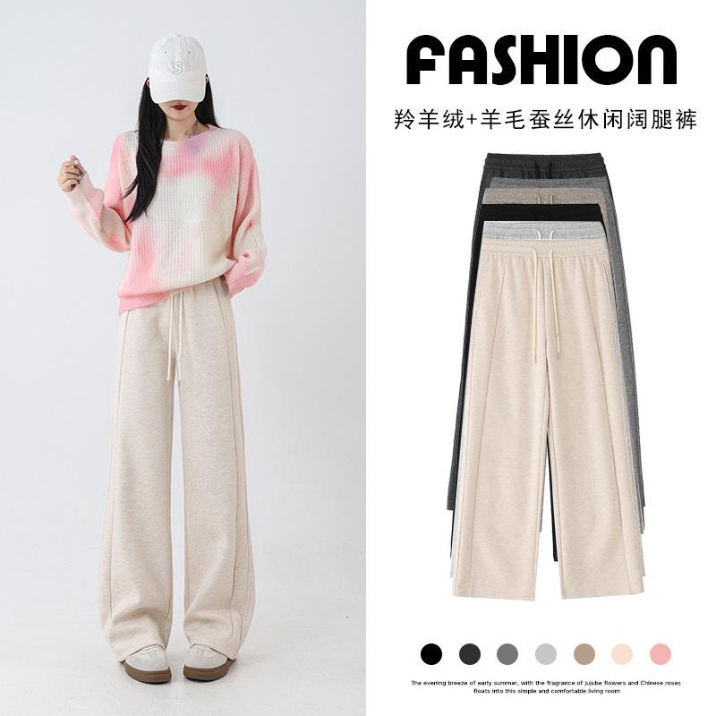Autumn and winter new women's clothing wool silk velvet warm wide-leg pants high waist straight casual thickened narrow banana