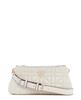This bag is made of fluffy faux fur material, giving it a seasonal feel. The metal brand logo in the same color as the front adds a subtle accent.