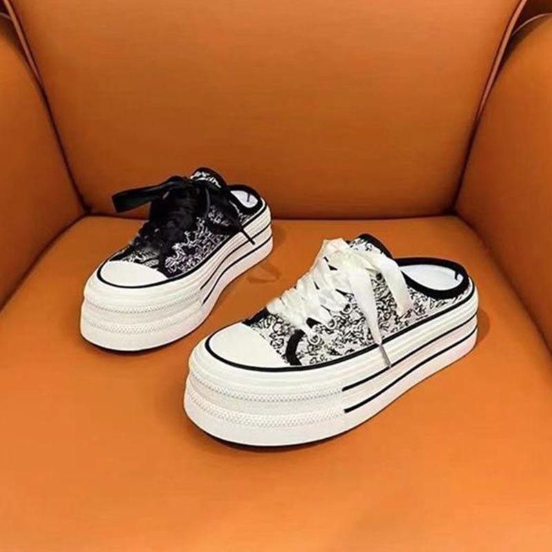 New Chinese espadrilles national tide wind lace-up thick baseplate shoes 2025 new casual women's shoes wear one pedal and half drag