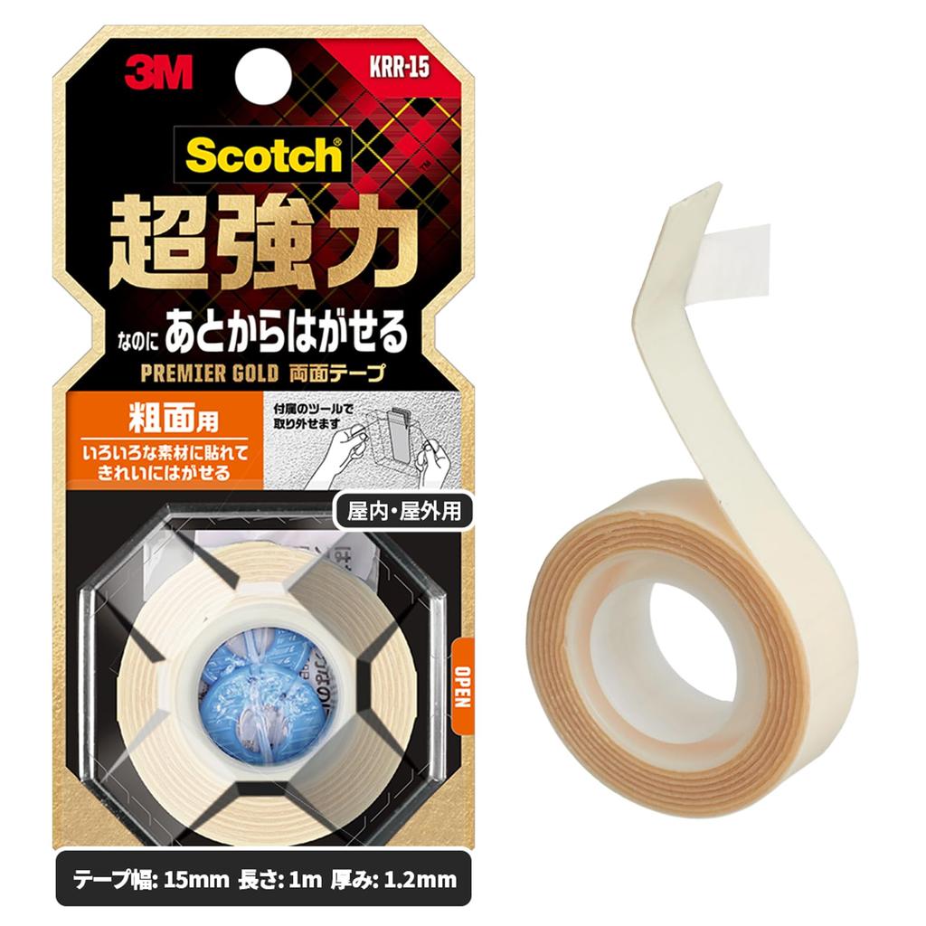 Scotch Premier Gold Çıkarılabilir Kaba Ultra Güçlü Çift Taraflı Yüzeyler için Bant, KRR-15