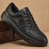 Trendy Leather Black Sneakers for Men's Casual Leather Shoes Height Increasing Thick Soled Small Black Shoes Low Top Casual Sneakers