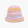 New thermal basin hat imitation rabbit hair female Internet celebrity trend female colorful rainbow striped bucket hat winter 2025
