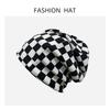 Japanese and Korean version of autumn and winter niche trend versatile checkerboard knitted hat small face versatile Internet celebrity wool hat women
