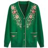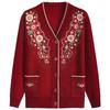 Women's Spring Autumn Casual V-neck Long Sleeve Jacket Female Knitted Sweater Middle-aged and Elderly Elegant Cardigan Jacket