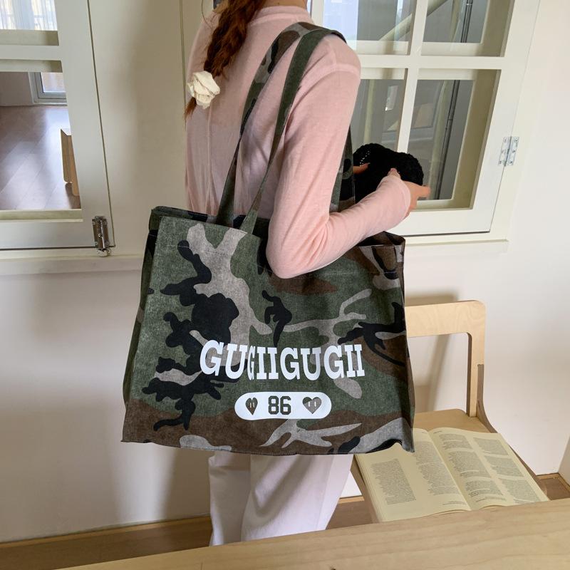 2025 new American retro tote bag street trend camouflage shoulder bag large capacity personalized commuter shopping bag