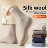 Autumn and Winter Warm Wool Socks for Men, Solid Color Business Style Boneless Mid-calf Socks, Sweat-absorbent and Breathable, Black