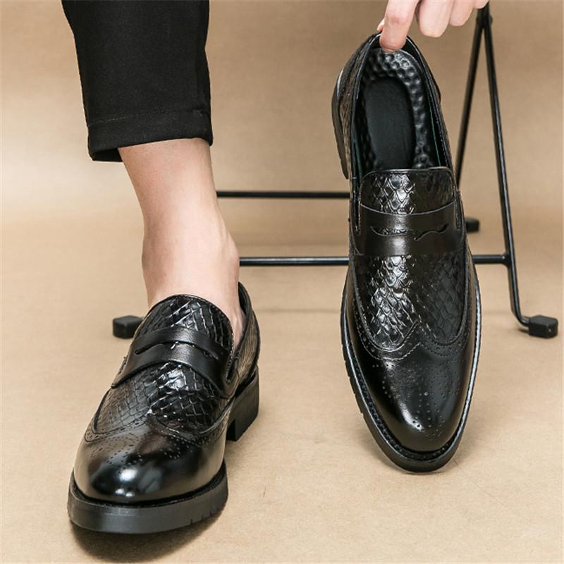 Retro Penny Loafers New Men's Pointed Patchwork Leather Brogues Shoes Designer Formal Wedding Prom Dress Homecoming Footwear