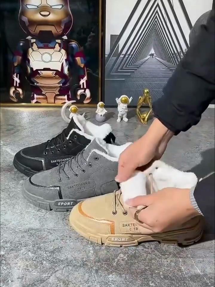 Kış İş Ayakkabıları Erkek Yüksek Bilekli Kar Botları Çok Yönlü Günlük Peluş Sıcak Pamuklu Ayakkabılar İş Ayakkabıları