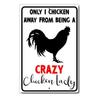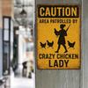 "Warning: Area Patrolled by Crazy Chicken Lady" metal sign, 8x12 inch.