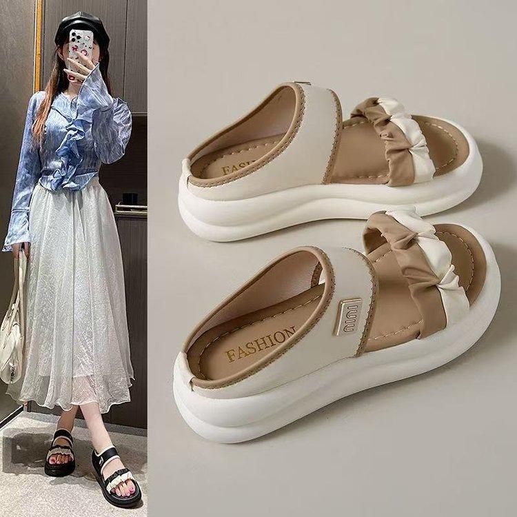 French super fire with skirt sandals women's summer wear 2025 new soft-soled non-slip not tired feet beach cool slippers