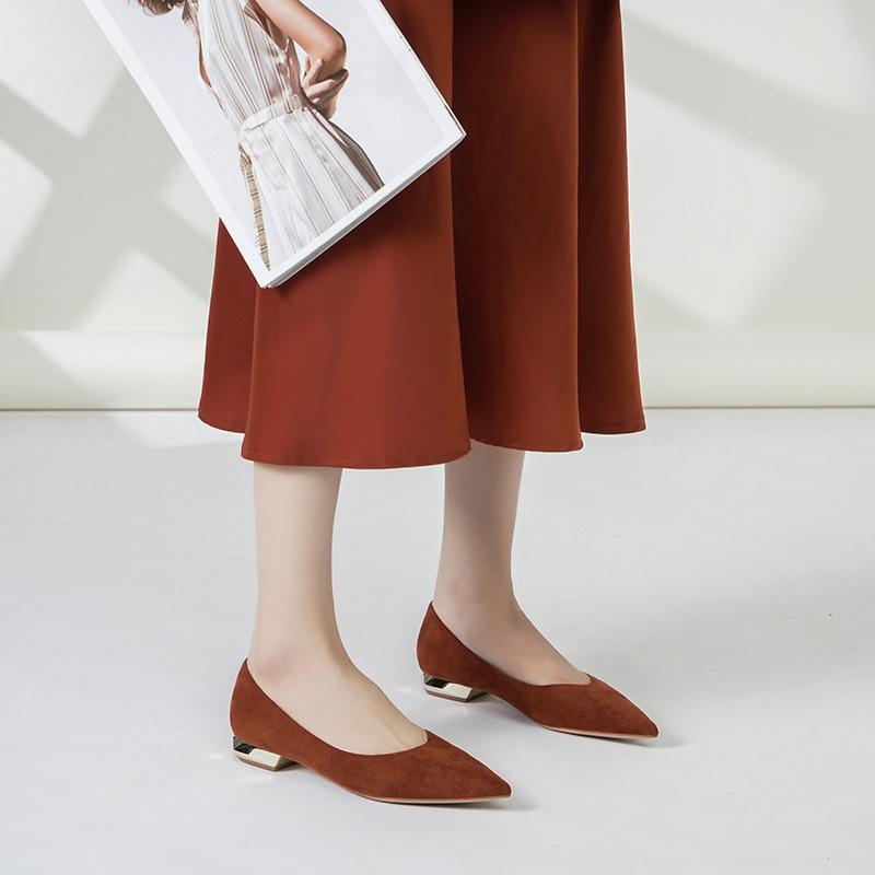 Single shoes women's thick heel autumn new versatile soft leather light mouth flat heel low heel pointed tip ladyshoes
