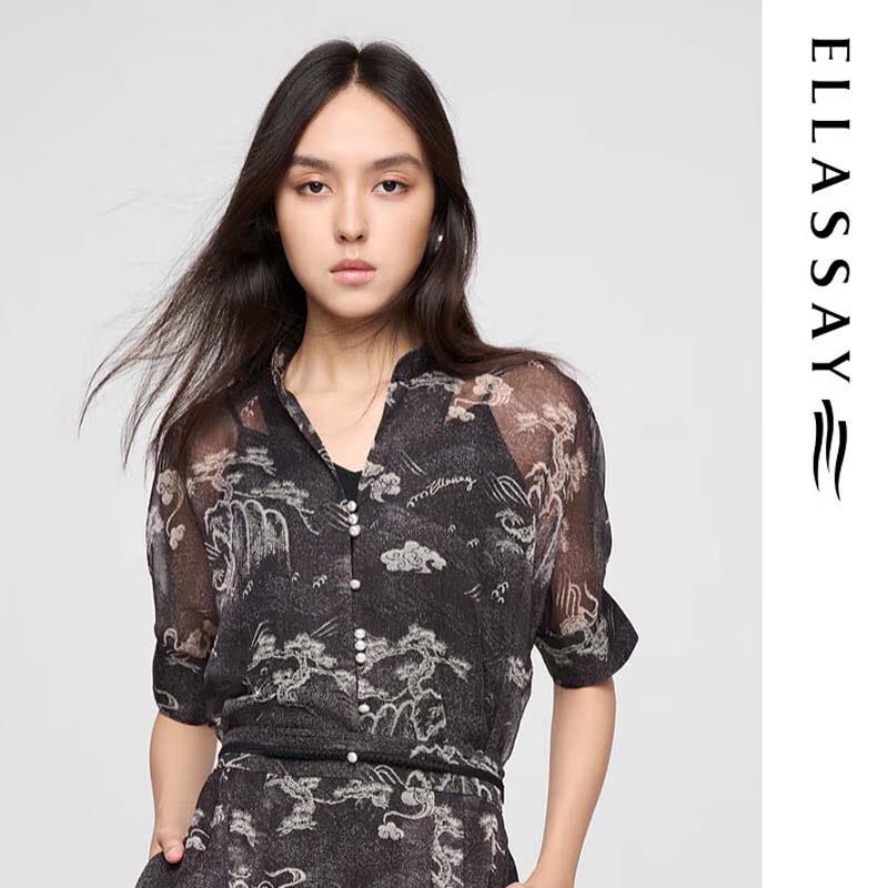 ELLASSAY Women's New Chinese Style Ink Print Two-Piece Shirt