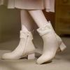 Autumn and winter versatile small fragrant style apricot velvet thickened thick heel retro style medium tube short boots ethnic style embroidered cott