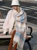 Gradient Color Stripes Autumn and Winter Korean Style Thickened Warm Off White Scarf Women's Simple Tassel Scarf Shawl