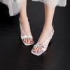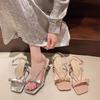After empty word with square head open-toed high-heeled sandals female 2025 French gentle sweet bow fairy high heels