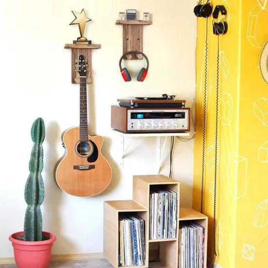 Bu gitar askısı ve saklama çözümü ile gitarınızı çarpıcı bir duvar sanatına dönüştürün. 4 inç derinliğinde ve seçme yuvalarına sahip raflara sahip olan bu ürün, tunerlar, kapolar veya bitkiler veya fotoğraf çerçeveleri gibi dekoratif eşyalar için alan sunar..