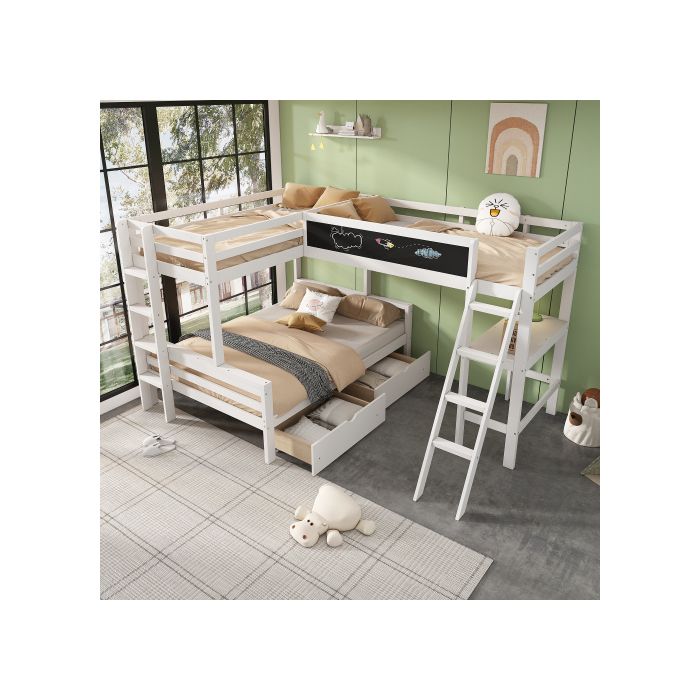 Lit superposé - MUVOE - 140x200 cm et 90x200 cm - Bureau intégré - Tiroirs de rangement - Sécurité renforcée