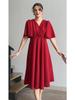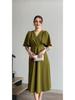 2025 Summer European & American Puff Sleeve V-Neck Waist-Gathering French Long Dress