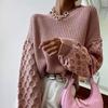 Spring Red Knitted Cotton Pullover Sweater - Women's Round Neck Solid Color Fashion