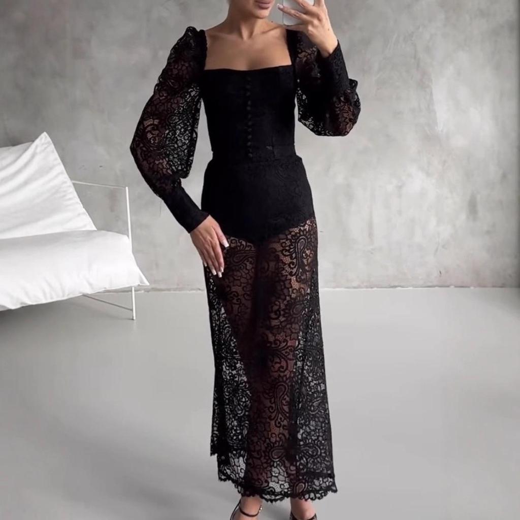 Cross-Border Women's Sexy Lace Deep V Ruffle Beach Dress