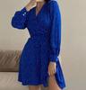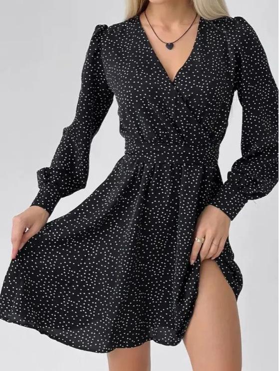 European Chic Black V-Neck Polka Dot Chiffon Dress - Women's Waist-Slimming Short Skirt for Early Autumn