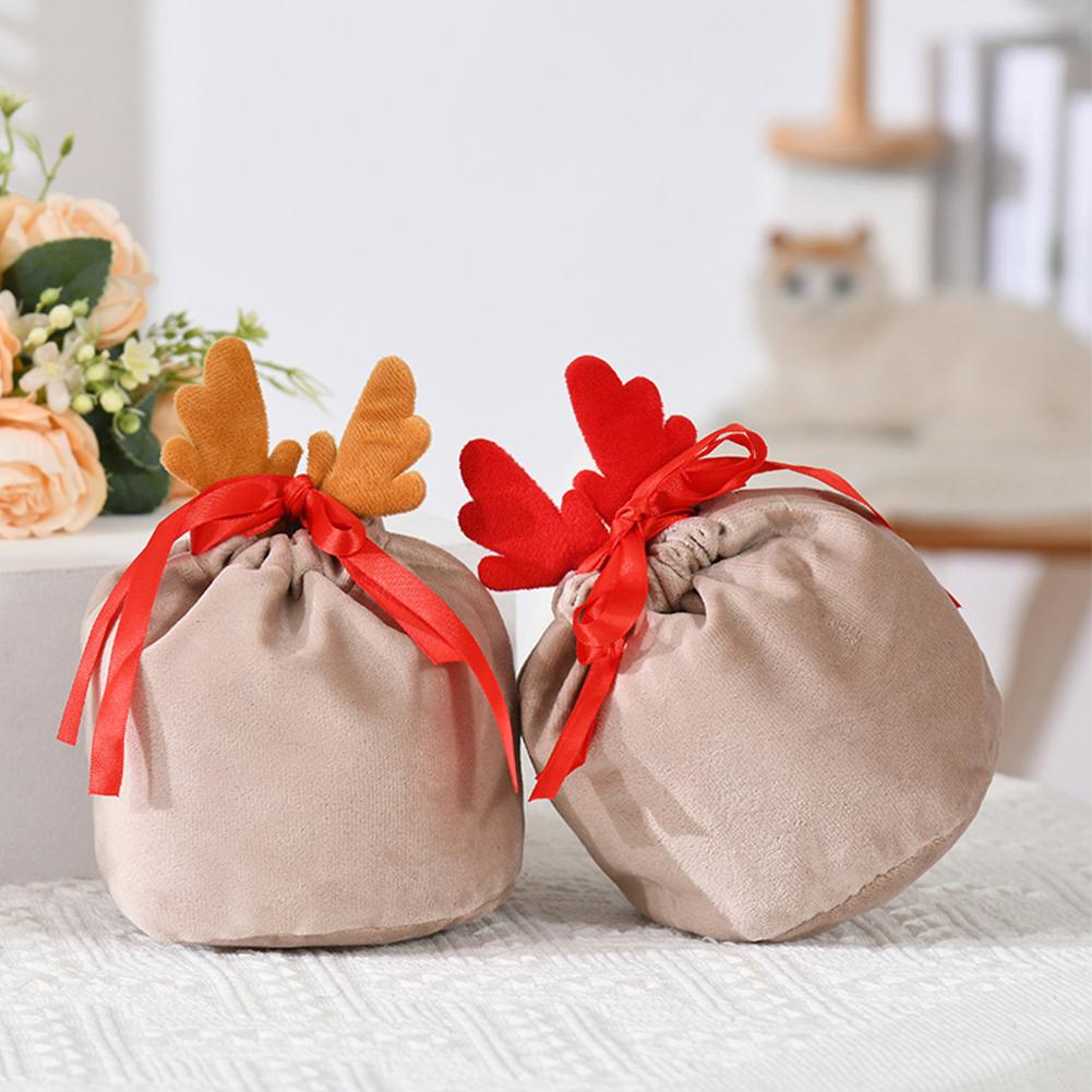 *Christmas Velvet Candy Bag: Featuring a classic Christmas design with 3D antler decoration, this bag is perfect for holding cute Christmas presents, candies, children's snacks, or even for storing small items. Get into the festive with this charming bag!