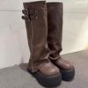 Pile stack boots 2025 thick soled western boots not over the knee long boots high top knight boots