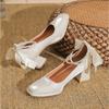 Designer Ladies High Heels Elegant Bow Square Toe Black High Heels Fashion Thick Heel Wedding Party Pearl Lace Wedding Shoes