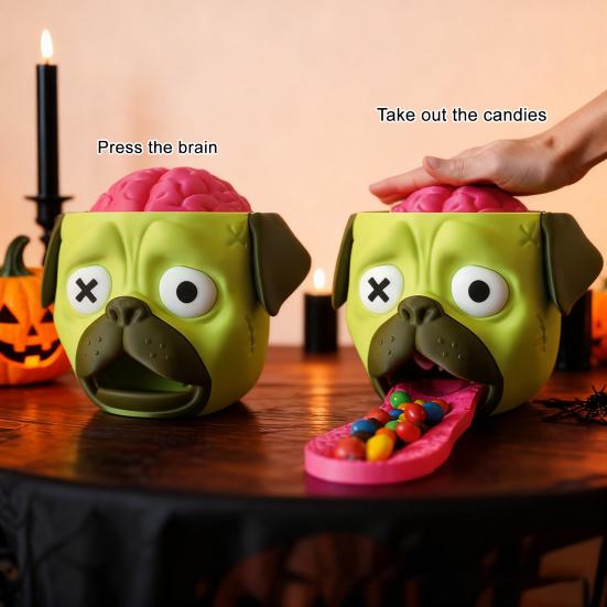 İnteraktif Eğlence Öğesi: Yumuşak "beyne" basarak sevimli zombi pug'ın diline şeker dağıtmasını izleyerek eğlenceli etkileşimlere girin. Cadılar Bayramı partilerine ve toplantılarına heyecan katmak için mükemmel.