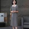 Retro Chic Striped Polo Collar Knit Dress - Summer 2025 Hong Kong Style Bodycon Skirt