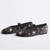 Retro Embroidered Flower Flat Ballet Shoes for Women 2025 Spring New French Round Head One Word Mary Jane Single Shoes Womens