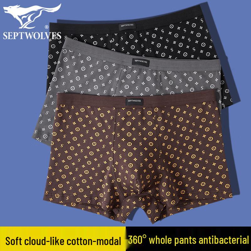 Septwolves Men's Pure Cotton Antibacterial Boxer Briefs
