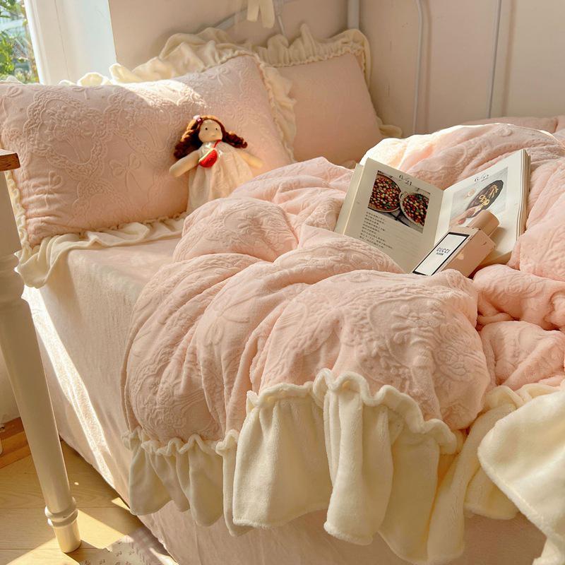 Princess Style Winter Carved Velvet 4-Piece Bedding Set: Class A Mother and Baby Warm, Thick Lace Quilt Cover