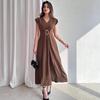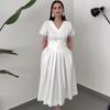 Discover effortless elegance with this women's V-neck A-line dress, designed with a chic waist-tie to accentuate your silhouette. Perfect for summer, it features a breathable polyester fabric that ensures comfort and style. The blend of European and American fashion influences offers a sophisticated look suitable for various occasions, from casual outings to elegant gatherings. Enjoy the versatility and timeless appeal of this must-have wardrobe addition.