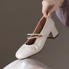 Mary Jane women's shoes 2025 spring and autumn new thick heel shallow mouth single shoes women's medium heel soft leather French temperament small le