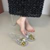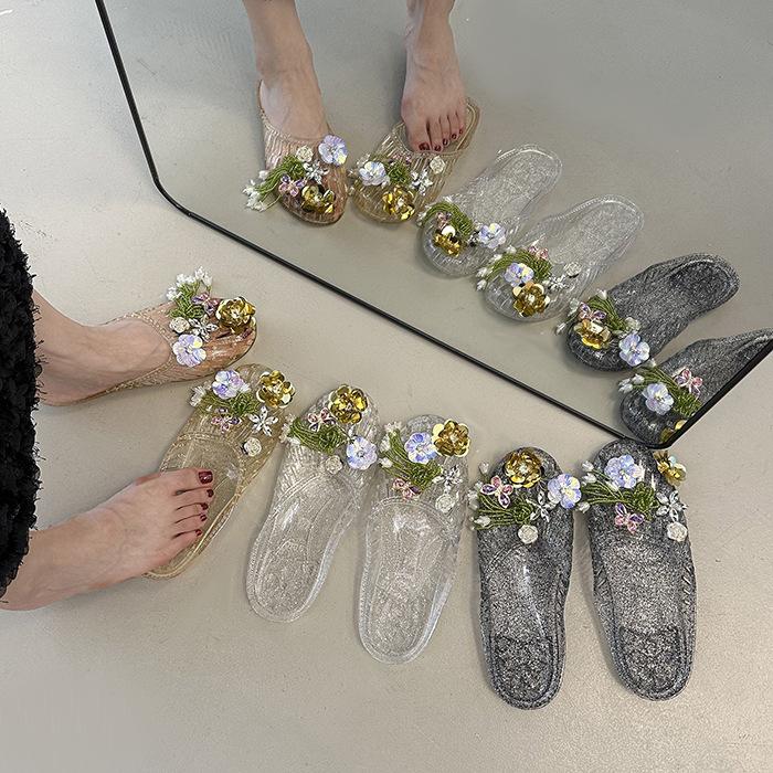 Beach jelly shoes fairy wind hollow flat crystal princess shoes soft sole one pedal fashion sandals flower rain shoes