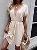 Women's Casual Fasion Solid Color Lace Stitching V-neck Short-sleeve Loose Chiffon Dress