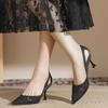 Women's Sandals Summer New Pointed Head Sequin Temperament Cloth Covered Head Buckle Sandals Casual Fashion High Heels