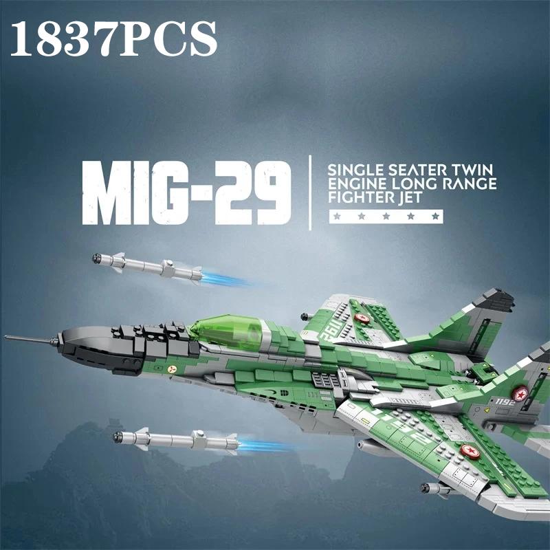 1837PCS MIG-29 Jet Fighter Building Blocks Diy Military Fighter Model Assembly Bricks Desktop Decoration Holiday Gifts Kids Toys