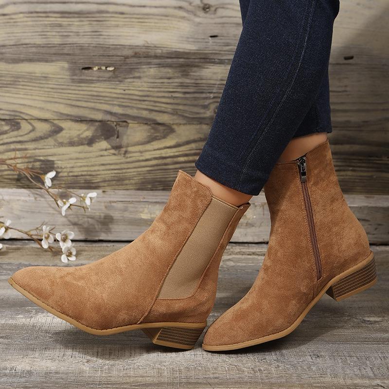 Autumn and winter new large size Martin boots women's British pointed thick heel side zipper women's short boots