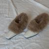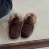 Leather square-headed fluffy shoes with one pedal, retro velvet to keep warm, Mary Jane small leather shoes, new cotton shoes, thick heels, single s