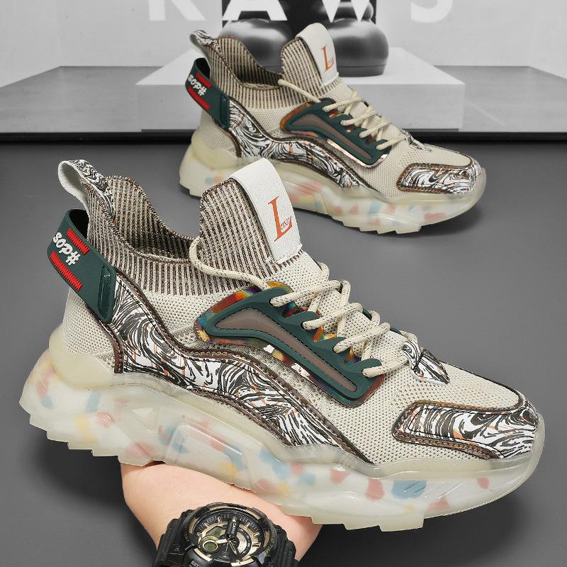 Autumn national sports shoes printed outsole ultra-light heightening platform running dad shoes large size men's shoes
